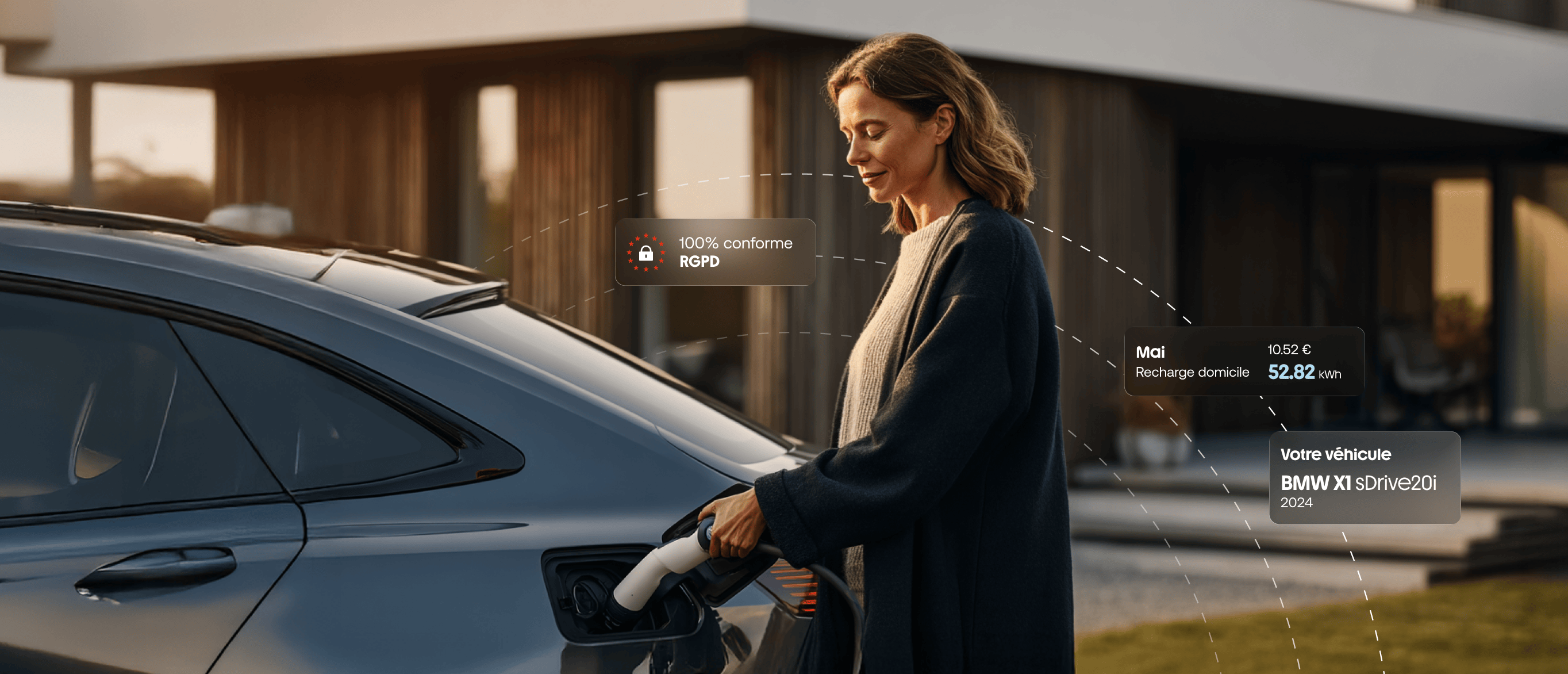 Chaque mois, un justificatif conforme est généré automatiquement : date, durée, kWh, montant de chaque recharge à domicile. Aucune saisie. Transmission directe ou téléchargement en un clic.